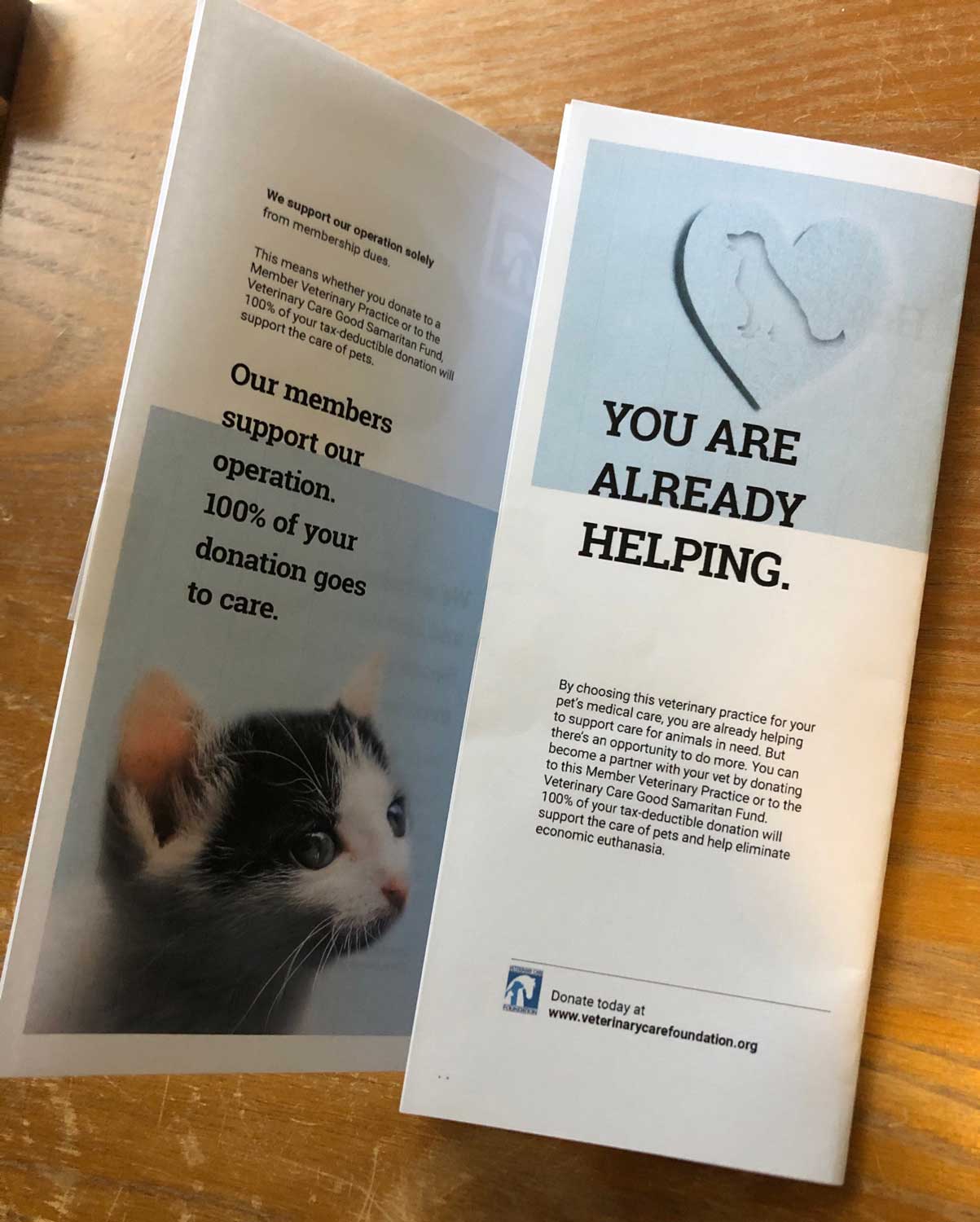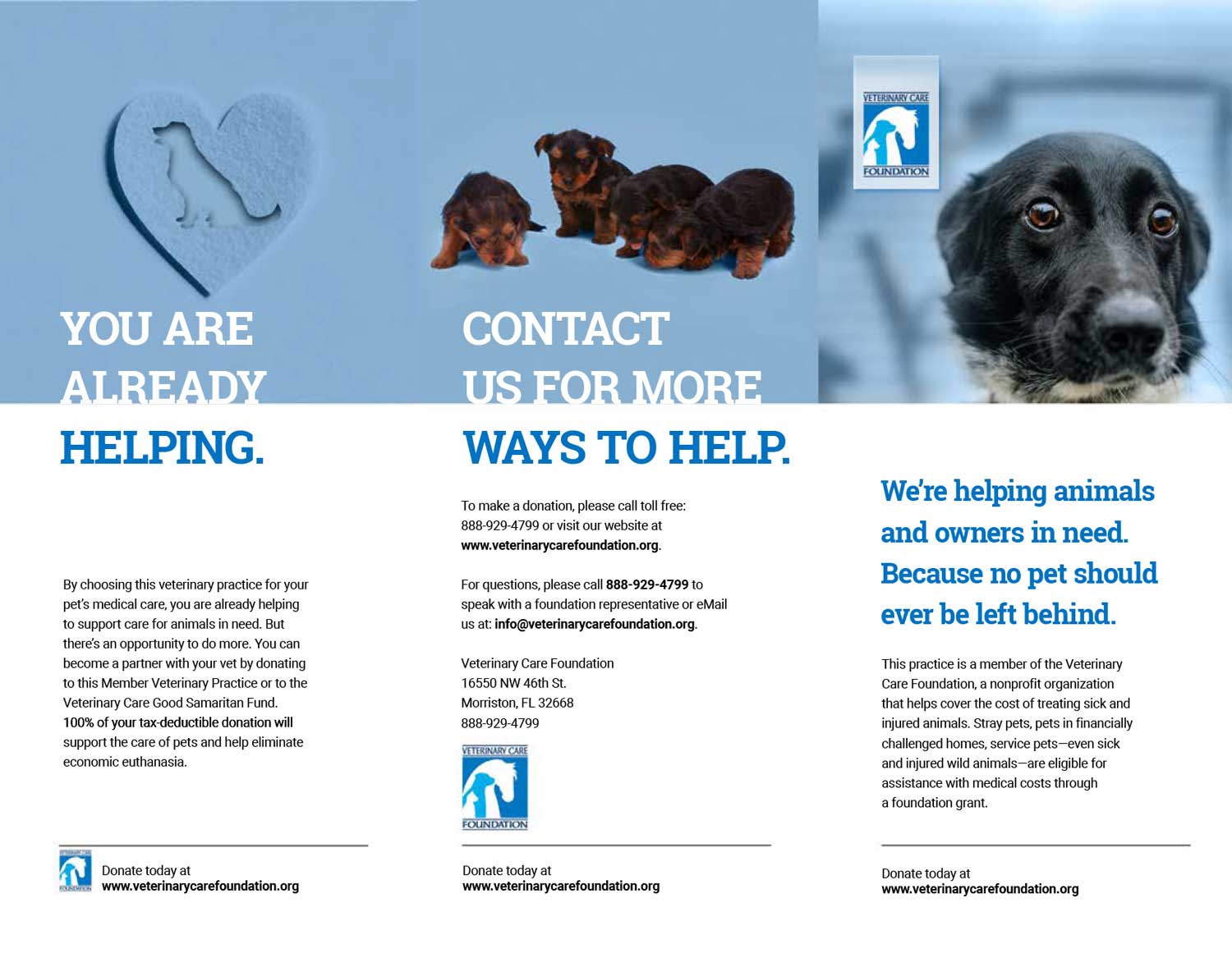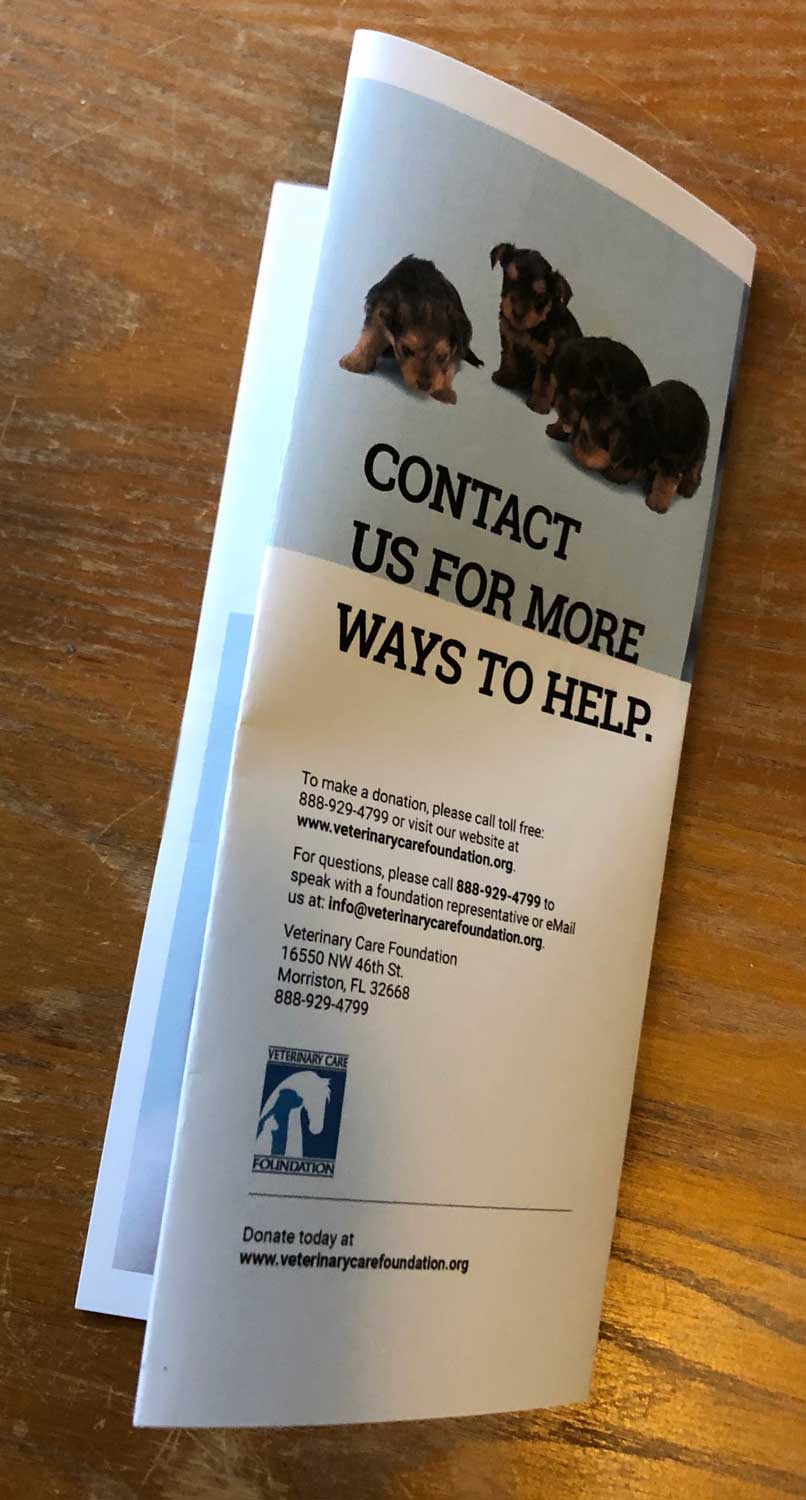 Full-color brochures tell potential donors all about VCF and how their donation helps your practice.